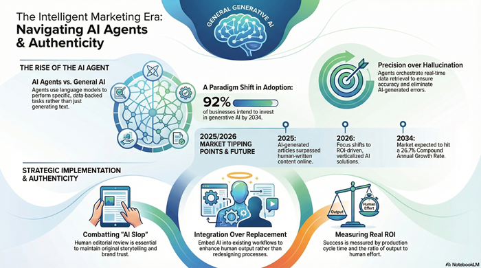 The introduction frames AI as a structural shift rather than a trend. It explains why efficiency gains alone are not enough and why trust, authenticity, and strategy matter more as AI adoption accelerates.